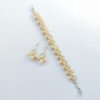 Gargantilla y pulsera de perlas de vidrio color natural.